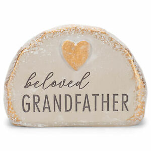 Beloved Grandfather Goldtone Heart 4.5 x 6 Resin Decorative Outdoor Garden Stone