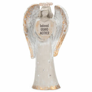 Beloved Grandmother Greywash Goldtone Angel 6 x 3.25 Resin Statue Figurine